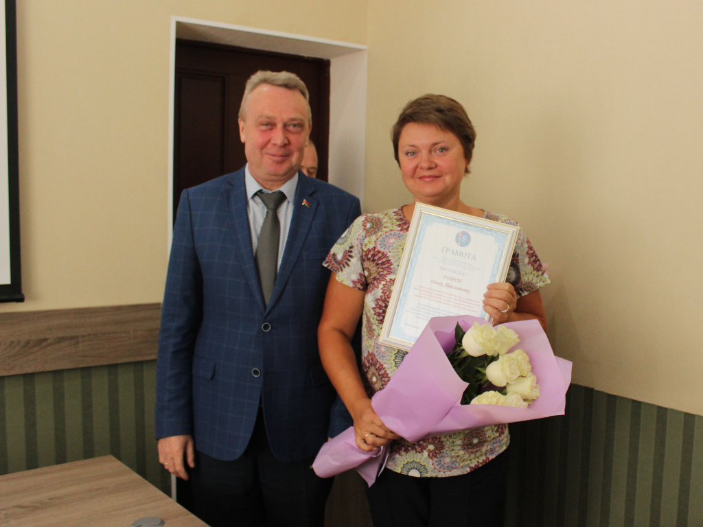 В числе награжденных - главный бухгалтер предприятия Ольга Ярославовна Годун, которую наградили Грамотой Минской областной организации Белорусского профессионального союза работников государственных и других учреждений.