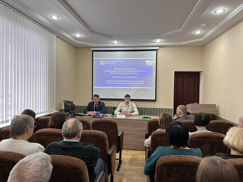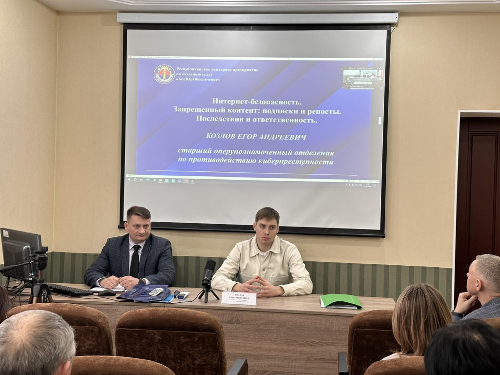 С работниками государственного предприятия «БелЮрОбеспечение», его филиалами и работниками государственного предприятия «Астерус» состоялась встреча со старшим оперуполномоченным отделения по противодействию киберпреступности Егором Козловым.