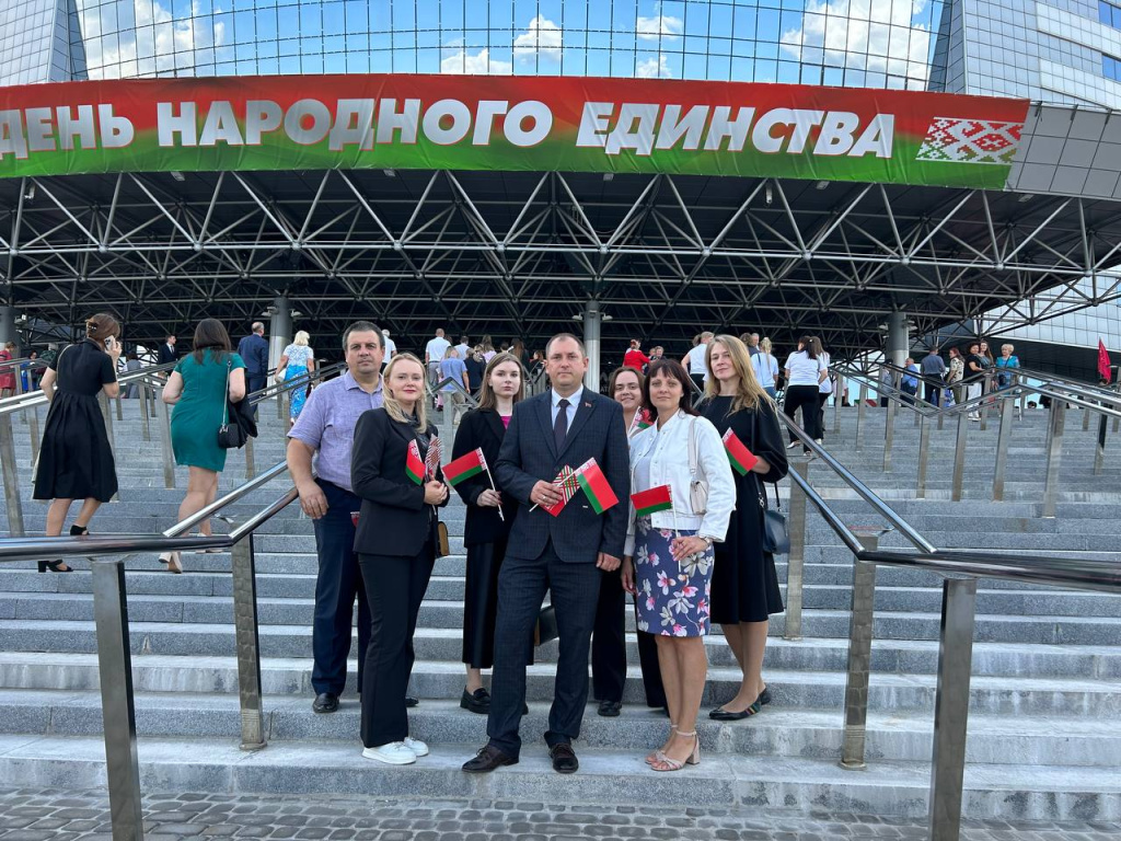 Кульминацией государственного праздника стал масштабный и зрелищный патриотический форум «Если мы едины», который объединил представителей всех регионов в столице страны. Почти 10 тысяч зрителей собрались в многофункциональном культурно-спортивном комплексе "Минск-арена", среди которых и работники государственного предприятия «БелЮрОбеспечение».