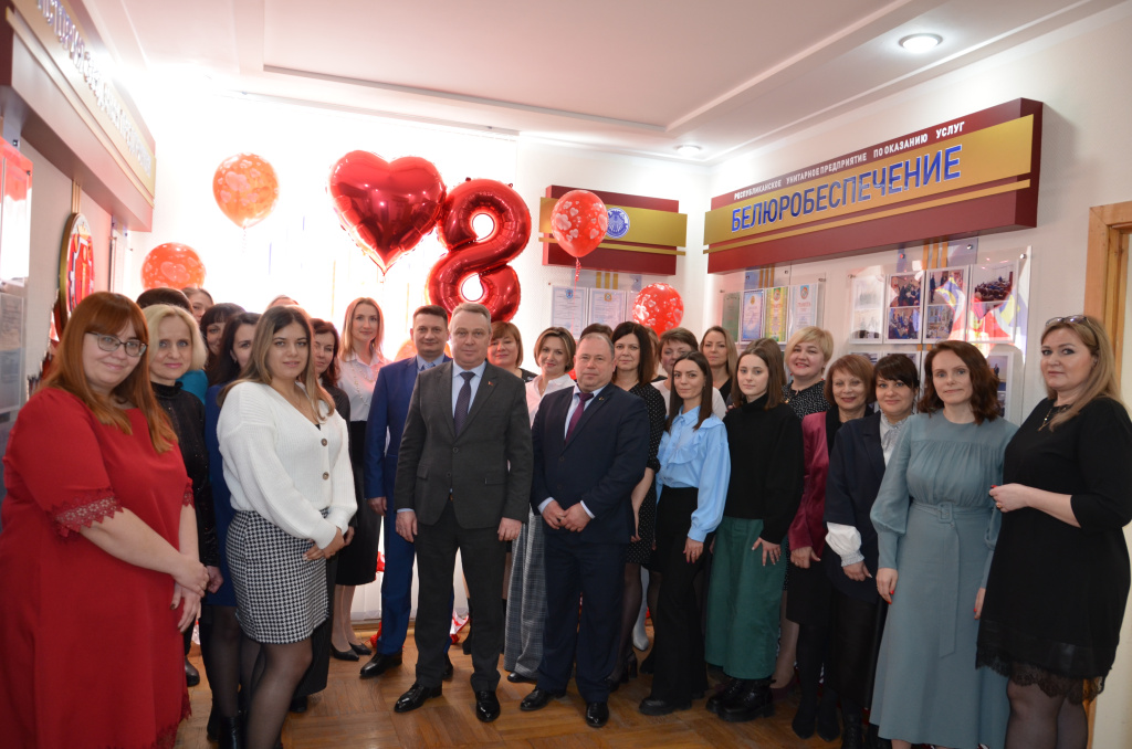В канун Международного женского дня мужской коллектив центрального аппарата и филиалов государственного предприятия «БелЮрОбеспечение» поздравил коллег-женщин с наступающим праздником. Поздравления для прекрасной половины начались с приятных сюрпризов, подготовленных мужчинами, которые не оставили равнодушными ни одно женское сердце.