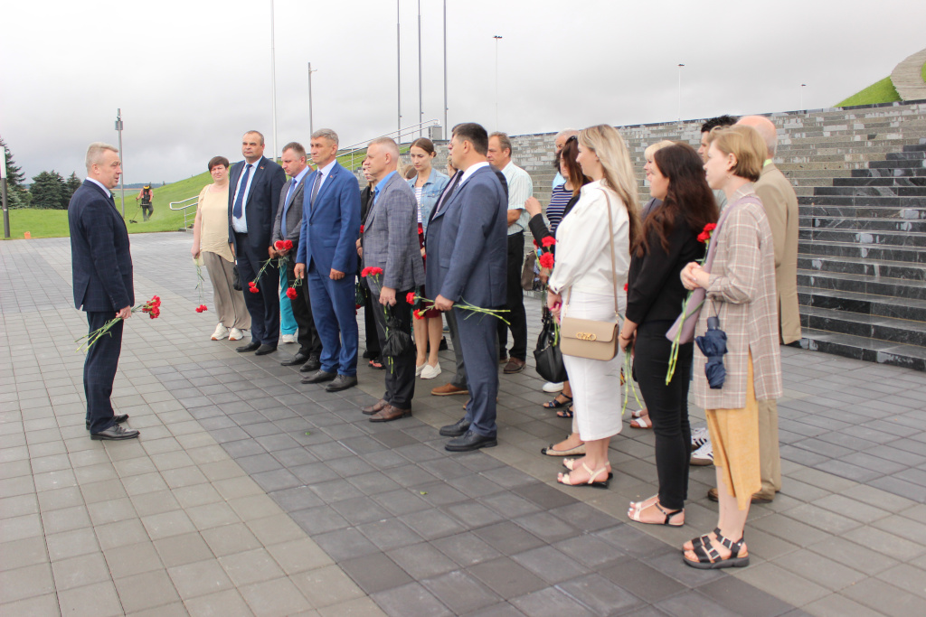 Следующая точка экскурсионного маршрута – мемориальный комплекс «Курган Славы». Присутствующие почтили минутой молчания память о погибших, и к подножию памятника легли алые гвоздики – неизменный символ праздника.