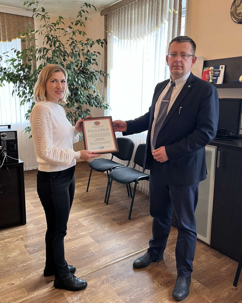В этот день работникам Брестского филиала ведущему оценщику Горевому В.И. и бухгалтеру Сарнавской И.Н. за добросовестное исполнение служебных обязанностей, ответственное отношение к работе, качественное и своевременное исполнение возложенных задач и в связи с Днём образования предприятия были вручены грамоты. Директор Брестского филиала Андрей Адамович Азаревич поблагодарил коллектив за профессионализм и личный вклад каждого работника, благодаря которым предприятие достигло высоких результатов.