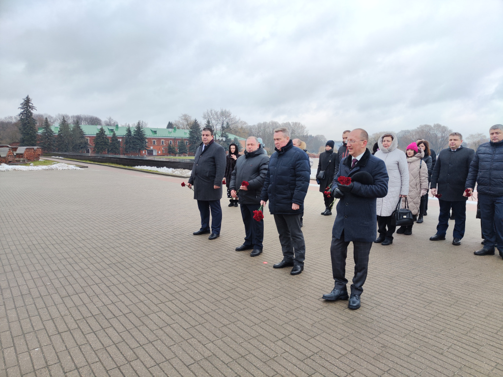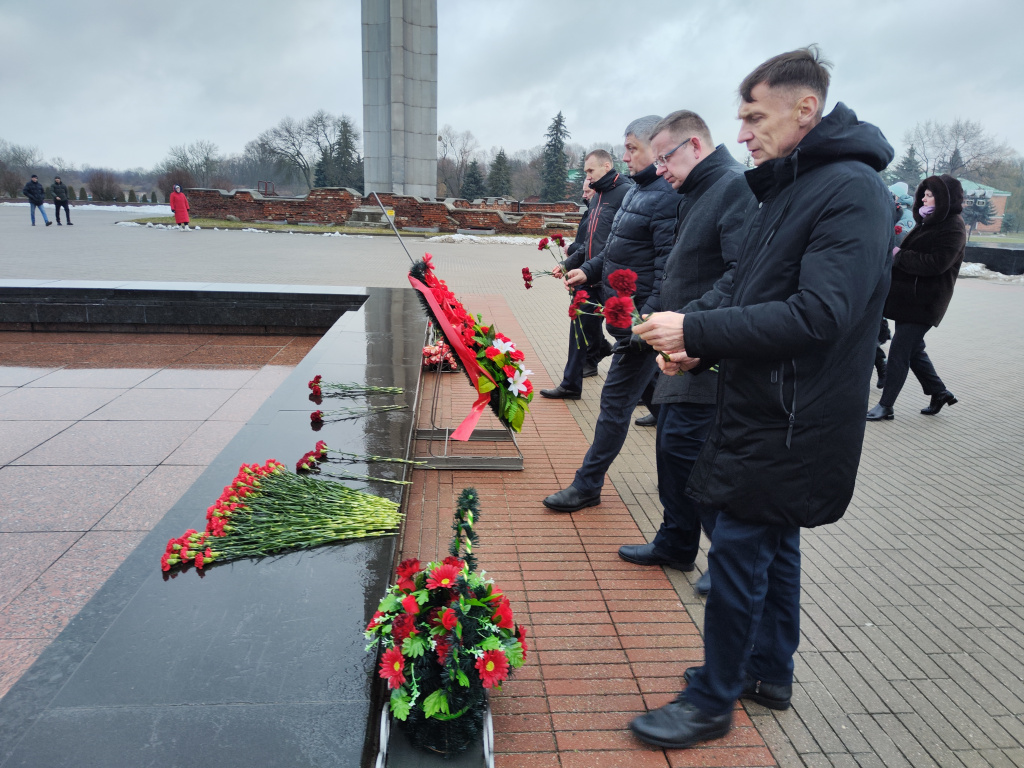 При посещении мемориального комплекса работники предприятия отдали долг памяти героям, погибшим за мирное будущее и независимость страны, возложив цветы к Вечному огню.