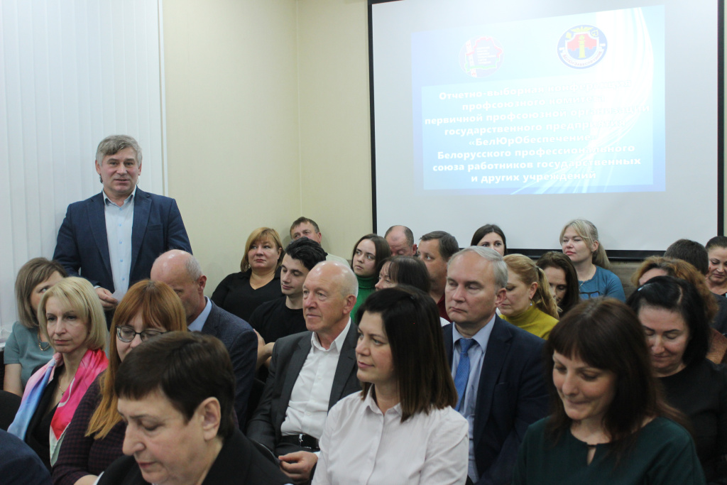 22 октября в Государственном предприятии «БелЮрОбеспечение» состоялась отчетно-выборная конференция первичной профсоюзной организации. Мероприятие открыл председатель профсоюзной организации Александр Анатольевич Мажанов, который отметил важность данного собрания для подведения итогов работы за последние пять лет.