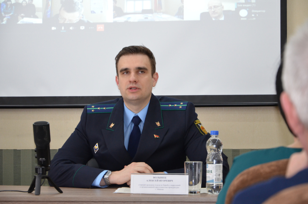 В рамках работы по противодействию коррупции и соблюдению требований антикоррупционного законодательства Республики Беларусь на базе государственного предприятия «БелЮрОбеспечение» состоялась встреча со старшим прокурором отдела по борьбе с коррупцией и организованной преступностью прокуратуры г. Минска Алексеем Игоревичем Волынцом. На мероприятии присутствовали работники центрального аппарата и филиалы предприятия.