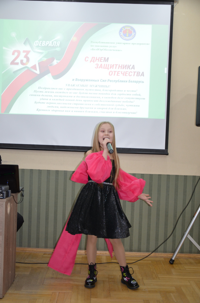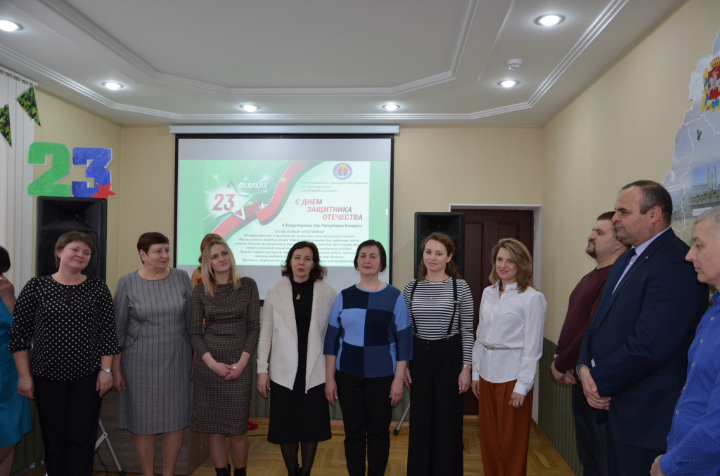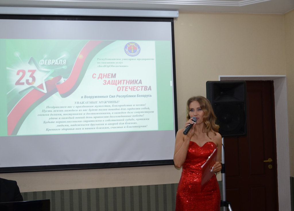 Сегодня, в праздник доблести, мужества и чести прекрасная половина коллектива государственного предприятия «БелЮрОбеспечение» поздравила мужчин с Днем защитников Отечества и Вооруженных сил Республики Беларусь.