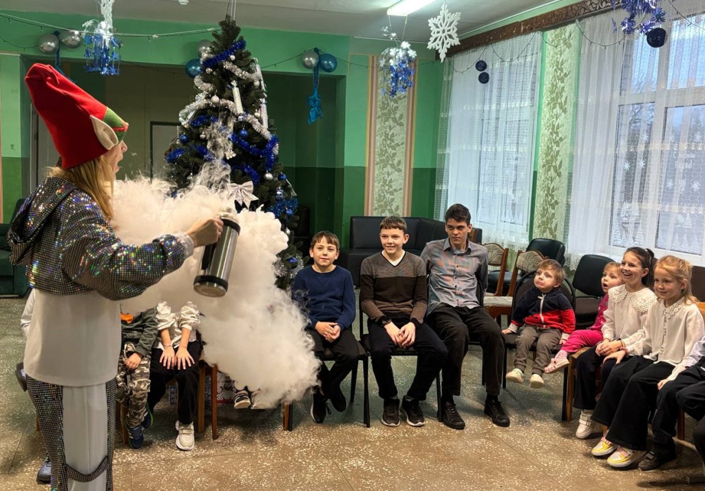 Для воспитанников центра аниматоры студии «Лайк Шоу» устроили захватывающее театрализованное представление. Вместе с Весёлым Эльфом ребята отправились в интерактивное путешествие: «побывали» на Северном полюсе, провели интересные эксперименты, спасли волшебных зверят и устроили «облачные» фейерверки.
