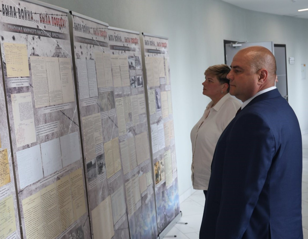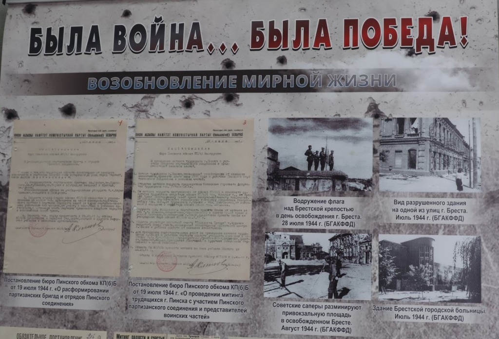 Сотрудники Брестского филиала республиканского унитарного предприятия по оказанию услуг «БелЮрОбеспечение» в главном управлении юстиции Брестского облисполкома ознакомились с подготовленной Госархивом Брестской области баннерной выставкой архивных документов «Была война… Была победа!».