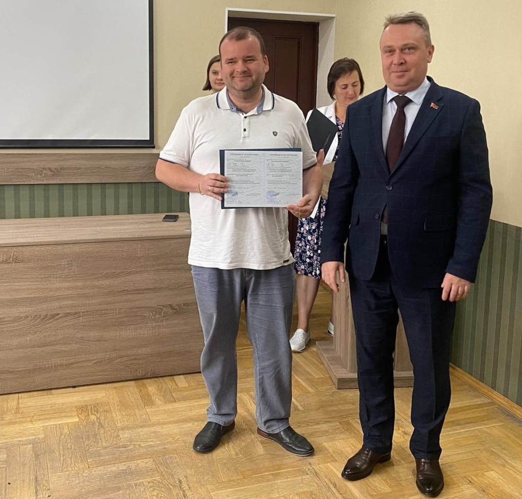 В присутствии начальника управления адвокатуры и лицензирования юридической деятельности Министерства юстиции Республики Беларусь Дианы Подлесской генеральный директор предприятия Валерий Дашковский вручил слушателям из разных регионов страны сертификаты об успешном прохождении курса обучения по теме «Подготовка к аттестационному экзамену для получения свидетельства об аттестации риэлтера» и пожелал им уверенности в своих силах на грядущем экзамене.