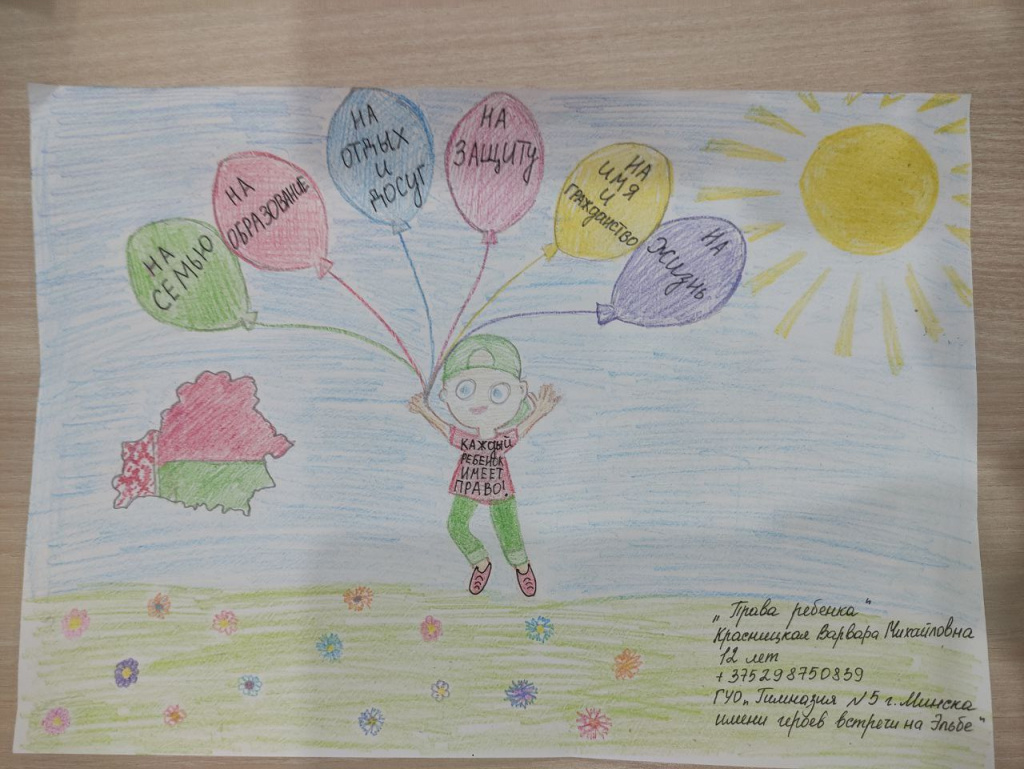 В числе участников конкурса – дети работников государственного предприятия «БелЮрОбеспечение», которые с энтузиазмом подготовили работы по следующим тематикам: права ребенка; социальная защита семьи и детей государством; защита прав детей-сирот и детей, оставшихся без попечения родителей; права детей-инвалидов; обязанности ребенка.
