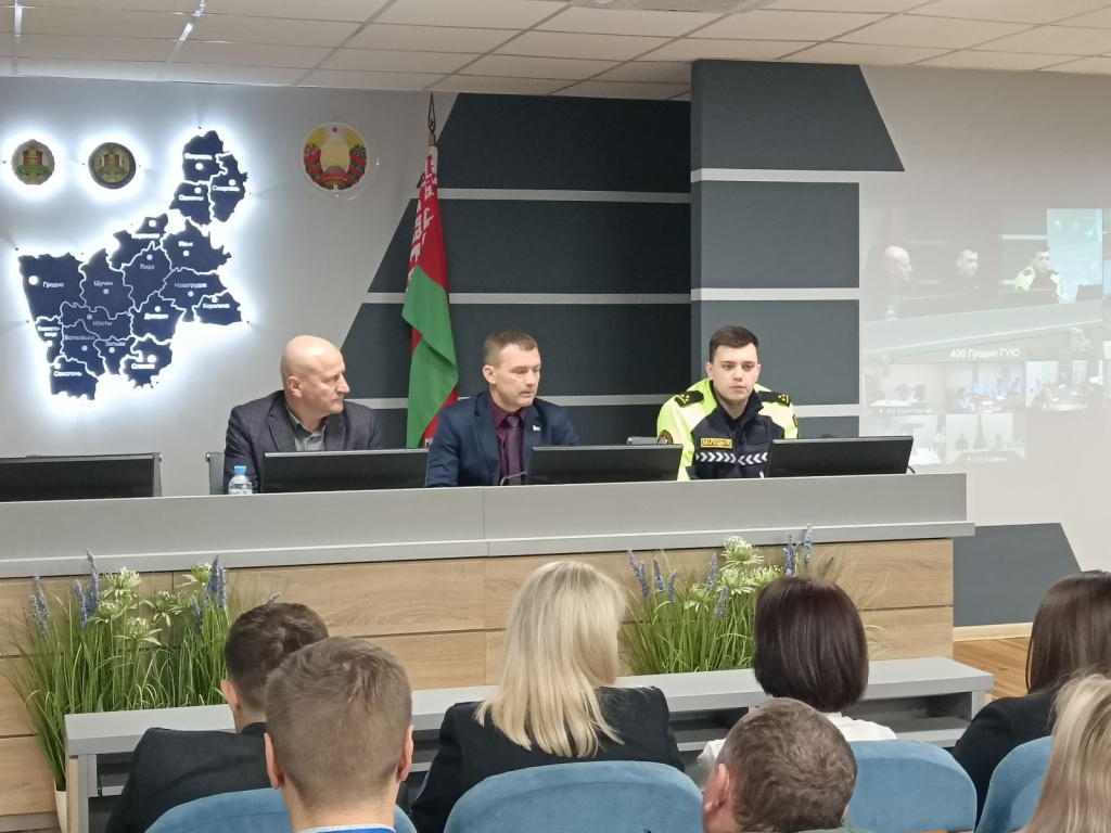 В целях профилактики правонарушений в Главном управлении юстиции Гродненского облисполкома состоялась встреча с государственным автоинспектором межрайонного ГАИ УВД Гродненского облисполкома Ильей Олешуком. Темой его выступления стало соблюдение правил дорожного движения в зимний период. Особое внимание было уделено вопросу эксплуатации транспортных средств в сложных погодных условиях, а также необходимости использования зимней резины.