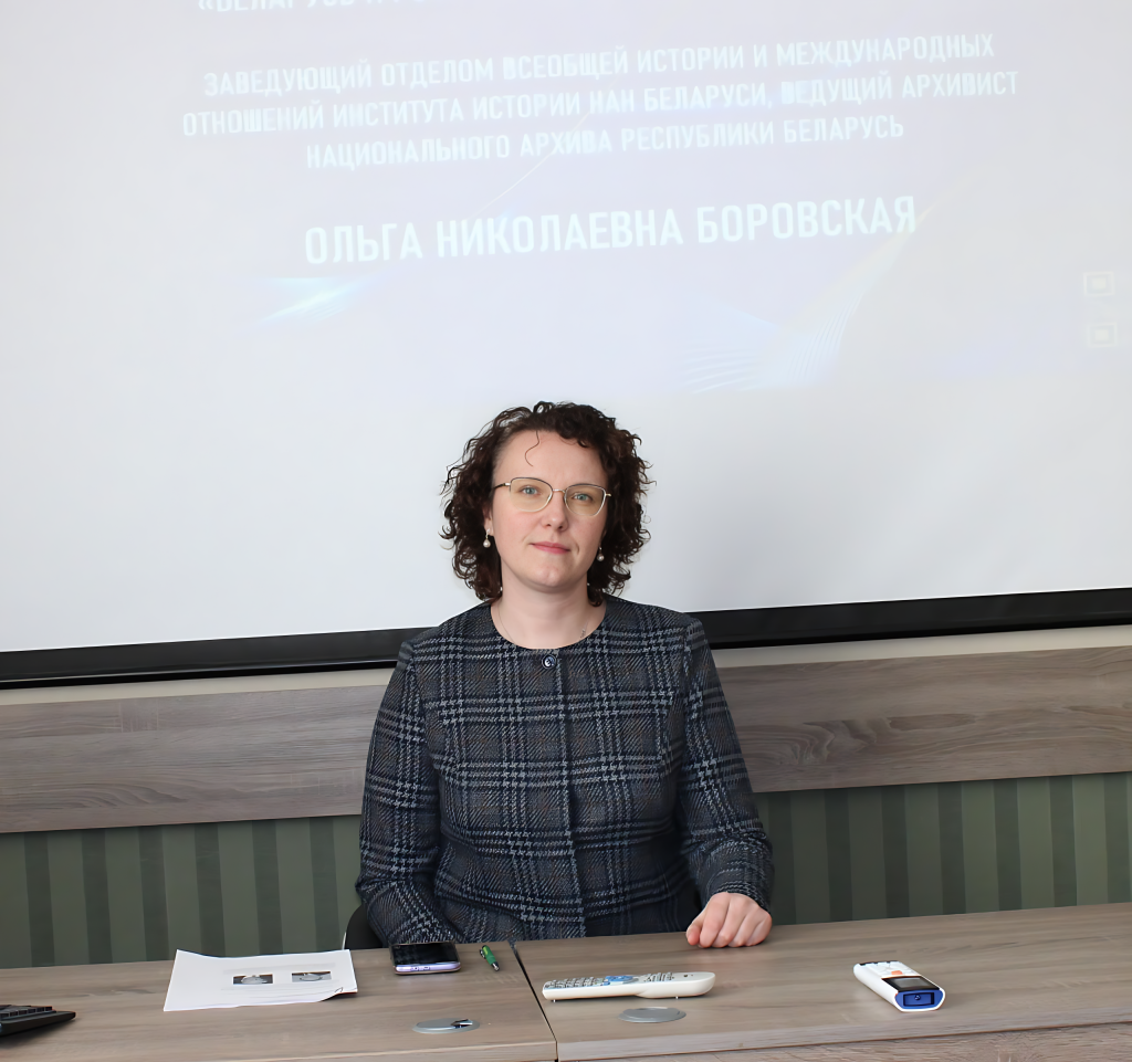 Ольга Николаевна Боровская, заведующий отделом всеобщей истории и международных отношений Института истории НАН Беларуси, ведущий архивист Национального архива Республики Беларусь, выступила перед сотрудниками государственного предприятия «БелЮрОбеспечение». Тема встречи — современный этап интеграции Беларуси и России — была приурочена к Дню единения народов двух стран.
